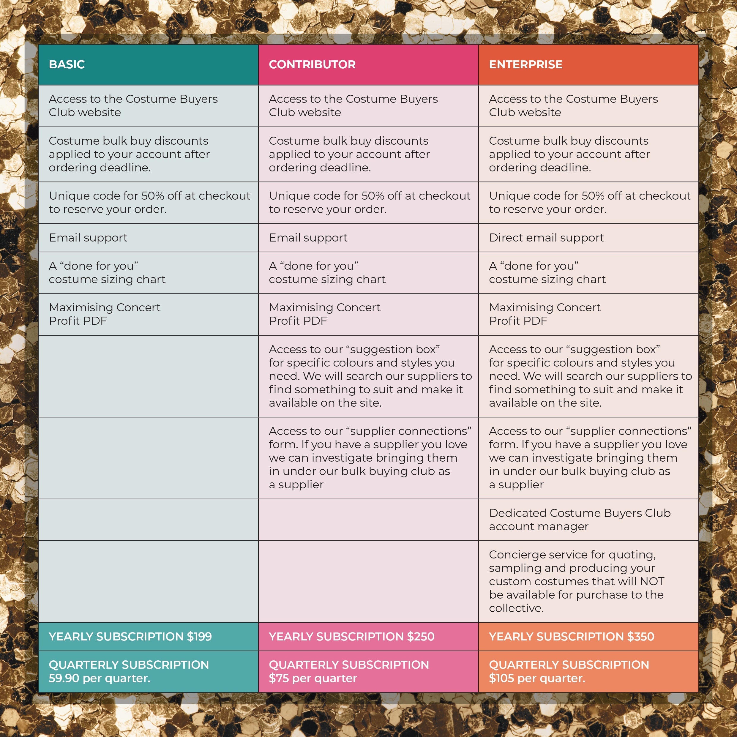 | Units | Price AUD per costume |
